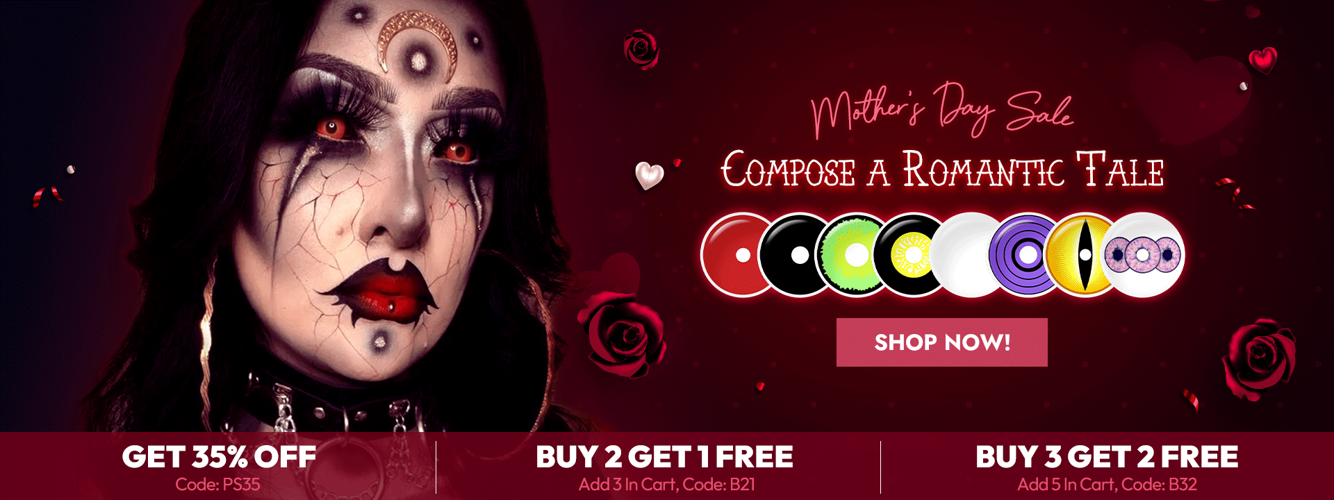 Vampire Contact Lenses are specially designed to bring a menacing scarlet hue to your natural gaze and an eerie red effect to your eyes! There are many different design options to choose from, and you can even customize the look to find the one that suits you best.